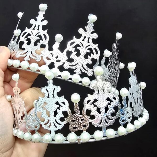 Adorno CORONA METAL PLATEADA CON PERLAS. Grande o Mediana. cantidad
